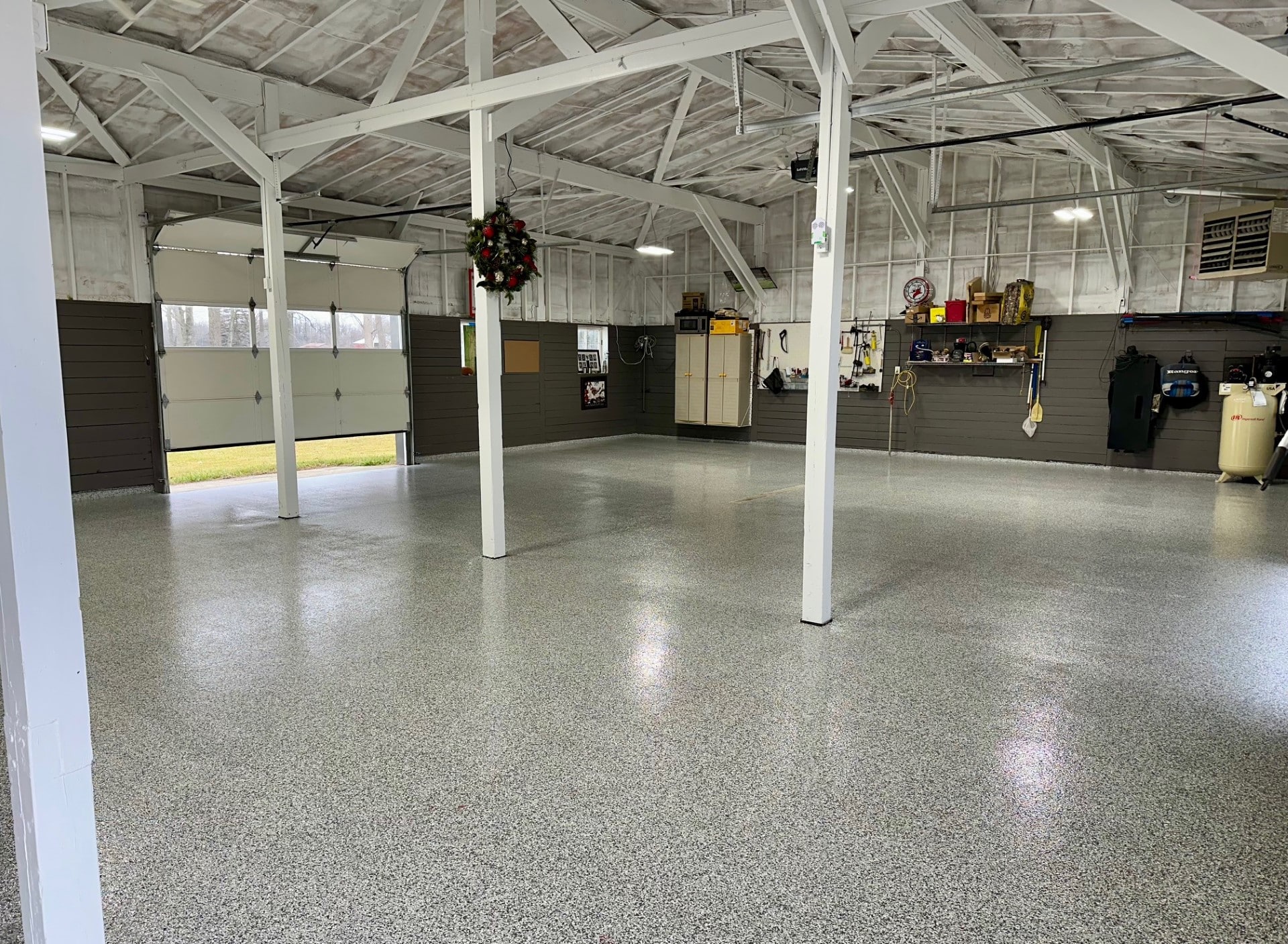 Whether you need a floor that can hold up to car care, workshop projects, and heavy equipment, or you want a clean, durable space to store your vehicles, tools, and belongings, we can help. We install high-performance coating systems for garages and pole barns, using only 100% solids industrial-grade epoxy polymers and polyaspartic topcoats. A professionally coated garage or pole barn floor delivers results that do-it-yourself products simply cannot: